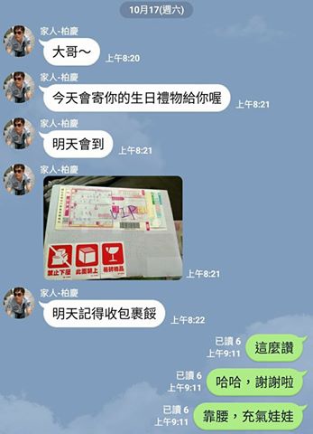 昨天收到大弟的Line,說要送我生日禮物,要我這兩天記得去管理室領。